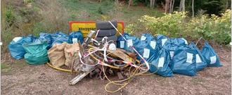 Bei der Aktion konnte eine große Menge Müll auf recht kleiner Fläche entfernt werden. Es fanden sich neben Flaschen, Plastik und Papier auch noch Elektromüll, Reifen und Schilder. Der Müll wurde auf einem Haufen gesammelt und wird steht für die Abholung durch den Baubetriebshof der Stadt bereit.