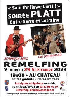 Herzliche Einladung zu einer schönen Mundart-Veranstaltung in unserer Partnergemeinde Rémelfing. Der Eintritt ist frei. Es empfiehlt sich jedoch eine Anmeldung, um einen der der begrenzten (80) Sitzplätze zu sichern.