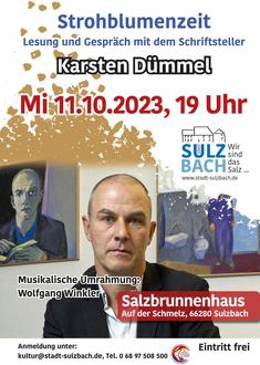 Im Rahmen des Sulzbacher Elysée-Jahres hält der Schriftsteller Karsten Dümmel eine Lesung aus seinem Roman „Strohblumenzeit“. Diese findet am Mittwoch, 11. Oktober um 19 Uhr im Salzbrunnenhaus statt. Musikalisch wird die Lesung von Wolfgang Winkler umrahmt.