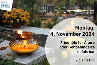 Jeden ersten Montag im Monat ist das Befahren der Friedhöfe in Sulzbach, Altenwald und Neuweiler für ältere oder gehbehinderte Personen von 9 bis 13 Uhr möglich.