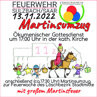 Der Löschbezirk Stadtmitte der Feuerwehr Sulzbach und der Förderverein der katholischen KiTa St. Elisabeth laden zum Martinsumzug ein.