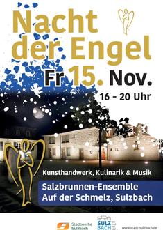 Am Freitag, 15. November 2024, ist es wieder soweit: Zur „Nacht der Engel“, dem Kunst- und Hobbyhandwerkermarkt der besonderen Art, präsentiert sich das Salzbrunnen-Ensemble wieder im illuminierten und schön dekorierten Gewand mit vorweihnachtlichem Charme. Die Besucherinnen und Besucher erwartet im historischen Ambiente rund um das Salzbrunnenhaus eine Vielfalt an Produkten der mitwirkenden Kunst- und Hobbyhandwerker. Von handgefertigten Unikaten aus Keramik, Holz oder Glas über Näh-, Strick-, Häkel- und Upcycling-Artikel bis hin zu Bildern, Karten, Kerzen und weihnachtlicher Deko ist wieder einiges im Angebot. Die namengebenden Engel, ob aus Glas, Keramik, Stein, Holz oder anderen Materialien werden natürlich auch wieder allgegenwärtig sein. Für den Genuss darf eine Auswahl an Honigprodukten, Likören, Kräutern, Gewürzen, Teesorten und Schokolade natürlich nicht fehlen. Weitere kulinarische Angebote und Getränke laden ein zum Verweilen und runden die Veranstaltung ab.