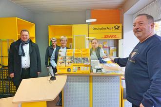 Am 9. November wurde in Neuweiler, Pestalozzistraße 46, die Postfiliale der Deutschen Post wiedereröffnet, nachdem sie krankheitsbedingt im Juli kurzfristig geschlossen werden musste. Bürgermeister Michael Adam besuchte am Tag der Wiedereröffnung die eigenbetriebene Filiale und begrüßte die Vertriebsleiterin Karin Stapel sowie die Mitarbeiterinnen Janine Velten, Melanie Harhoff und Lea-Maria Adam in ihrer Filiale und als ersten Kunden René Commont. „Ich freue mich, dass die Deutsche Post wieder mit einer Filiale in Neuweiler präsent ist und wünsche den Mitarbeiterinnen einen guten Start“, so Bürgermeister Michael Adam. Karin Stapel betreut insgesamt 87 Filialen und Niederlassungen im Saarland zwischen Homburg und Tholey. Sie erklärt: „Diese Filiale ist eine Interimslösung, um den Kundinnen und Kunden in Neuweiler den bestmöglichen Service anbieten zu können. Die DHL ist bemüht, hierfür einen passenden Partner im Einzelhandel oder in einem anderen Gewerbe zu finden. Sollten sich in Sulzbach Geschäftsleute für die Übernahme einer Filiale oder auch eines DHL Paketshops interessieren, so können sich diese über das Onlineangebot der Deutschen Post bewerben“, sagt sie. Dies geht über die Seite www.deutschepost.de/partner-werden.