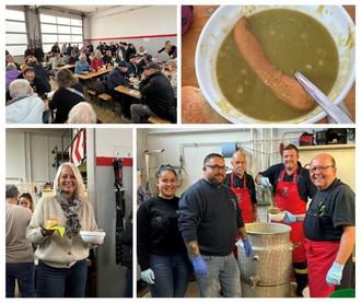 Von 6 bis 11 Uhr standen Kalle Müller, Karsten Pitz, Ralf Metz und Peter Kniecher an den beiden großen Bottichen und rührten. Dann war die Suppe fertig und ein köstlicher Duft zog durch das Gerätehaus.