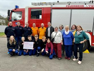 Die Hühnerfelder „Buwe unn Määde“, die jährlich die „Kerzekerb“ in ihrem Stadtteil veranstalten, hatten als Dankeschön einen Spendenscheck über 500 Euro mitgebracht, die sie dem Förderverein der Feuerwehrjugend des Löschbezirks 3 überreichten. Eine schöne Geste, die für strahlende Gesichter sorgte.