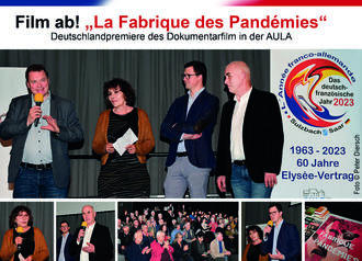 „Film ab“ hieß es am 13. November 2023 in der Aula in Sulzbach. Der Dokumentarfilm „La fabrique des pandémies“ von Regisseurin Marie-Monique Robin und mit Oscar-Preisträgerin Juliette Binoche feierte mit über 100 Zuschauerinnen und Zuschauern in Sulzbach seine Deutschland-Premiere. Gemeinsam mit der Konrad-Adenauer-Stiftung und der Union Stiftung präsentierte die Stadt Sulzbach diesen Film im Rahmen ihres Elysee-Jahres. Bürgermeister Michael Adam begrüßte Filmemacherin Marie-Monique Robin, sowie Dr. Karsten Dümmel von der Konrad-Adenauer-Stiftung und Dominik Holl von der Union Stiftung. Für den Film und das gleichnamige Buch hat Marie-Monique Robin rund 100 Wissenschaftler interviewt. Davon hat sie rund 60 Interviews für das Buch verwendet und rund 15 für den Film. „Wenn man einen Film mit Wissenschaftlern macht, ist die Frage immer wie man das Thema für ein breites Publikum zugänglich machen kann. Und Juliette hat dies in ihrer Rolle geschafft. Der Film wurde bereits in 16 internationalen Fernsehsendern ausgestrahlt“, so Robin.
