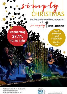 Das besondere Weihnachtskonzert mit Simply Unplugged findet unter dem Motto „Simply Christmas“ am Donnerstag, 27. November, 19.30 Uhr, im Salzbrunnenhaus statt. Eigene Versionen weltbekannter Hits, humorvolle Moderationen und abwechslungsreiche Bühnenshows sind das Konzept, dass Musikfans begeistert.