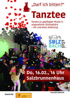 Im Terminkalender für Seniorinnen und Senioren hat das Seniorenprojekt „Reif - ein Plus für alle“ am 16. Februar nach langer Pause endlich wieder ihren Tanztee im Salzbrunnenhaus im Angebot. Da heißt es wieder rein in die Tanzschuhe und ab auf die Tanzfläche - und schon können Sie wieder dabei sein, wenn es wieder darum geht, sich in netter Gesellschaft ungezwungen zu bewegen - und das auch noch bei Bedarf mit anleitender Unterstützung! Ob alleine oder als Paar oder im kleinen Freundeskreis - alle sind willkommen! Ob zu gepflegter Orchestermusik oder ohrgängigen Schlagern - da ist für jeden was dabei…