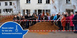 Alles war vorbereitet: Die Spaten und Bauhelme standen bereit, und auch die Sonne begleitete dieses langersehnte Ereignis. Der Startschuss für die Sanierungs- und Umbaumaßnahmen ist am Dienstag, 11. Februar 2025, mit einem Spatenstich vor dem ehemaligen Schwesternwohnheim gefallen. Das historische Gebäude in der Lazarettstraße 1 steht auf der Liste der Baudenkmäler in Sulzbach und wird jetzt mit Gesamtkosten von rund 2,2 Millionen Euro – davon 1,7 Millionen Euro aus dem Bundesprogramm „Sanierung kommunaler Einrichtungen in den Bereichen Sport, Jugend und Kultur“ – saniert und in ein Jugendzentrum Plus umgebaut.