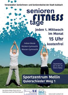 Der nächste Senioren-Fitness-Tag findet am Mittwoch, 4. März, um 15 Uhr im Sportzentrum Mellin statt. Organisiert wird die Veranstaltung vom Seniorinnen- und Seniorenbeirat der Stadt Sulzbach. Treffpunkt ist im Foyer des Sportzentrums. Auf dem Programm stehen: Wassergymnastik, Schwimmen und Indoor-Boule. Ein gemütliches Beisammensein wird im Anschluss ab gegen 16 Uhr im Bistro Relax arrangiert.