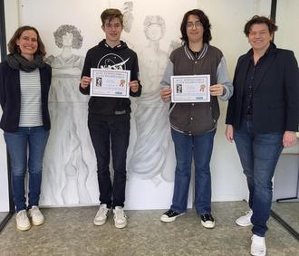KREIS AHRWEILER. In diesem Schuljahr hat das Are-Gymnasium zum ersten Mal das europäische Lateinexamen der Euroclassica (European Certificate for Classics, Latin Level 2/ Ianua) durchgeführt. Dieser Wettbewerb bietet die Möglichkeit, in den Alten Sprachen ein europäisches Zertifikat zu erwerben, wobei sich das Anforderungsniveau an europaweiten Standards nach drei bis vier Jahren Lateinunterricht orientiert. Auf der Grundlage eines lateinischen Textes stellten die Wettbewerbsteilnehmer*innen der Jahrgangsstufe 9 im Multiple-Choice-Format ihre Kompetenzen in den Bereichen Sprache, Text und Kultur unter Beweis. Dabei war auch philosophisches, historisch-politisches und mythologisches Hintergrundwissen gefragt. Die Fachschaft Latein und die Schulleiterin Nina Pfeil freuen sich, die Leistungen von Christopher Giffels (9A) und Julius Krupp (9A) jeweils mit einer Bronze-Urkunde der Euroclassica auszeichnen zu können. Gratulamur!