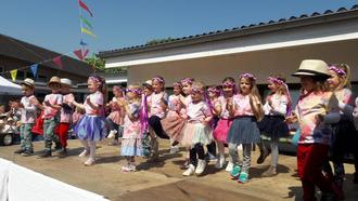 Die Vorsitzende des Fördervereins, Nadia Jeck, freute sich ebenfalls, so viele Gäste zu sehen. Sie berichtete, dass der Förderverein eine Workshopwoche bei der Tanzschule Zettler für das Einstudieren der Tänze der Kitakinder gebucht hatte. Und die Ergebnisse führten die Kinder in vier Gruppen auch umgehend auf der Bühne vor. „Hits für Kids“ war waren an diesem Tag für die Zuschauer ohne Konkurrenz. Die Gäste strahlten hingerissen und der Applaus wollte nach der lustigen Miniplaybackshow mit fetziger Musik, Bühnennebel und Seifenblasen unter blauem Himmel nicht enden. Die Mädchen und Jungen hatten nicht nur die Tänze einstudiert, sondern auch Mikrophone gebastelt und erschienen in Outfits passend zu den Songs.