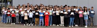 Stolz präsentieren die Fünftklässler*innen ihre Urkunden für die Teilnahme am Löwentraining