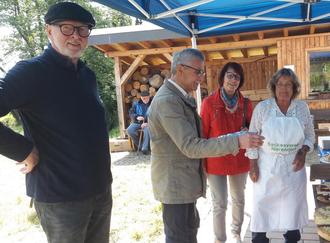 Ein neuer Kühlschrank zählt ebenfalls zu den neueren Errungenschaften. Von den 600 Euro Anschaffungskosten hatte die Raiffeisenbank Rheinbach 500 Euro gespendet. Bei einem kleinen Rundgang um das Backes konnte man auch die beiden Qittenbäume bewundern, die der Verein gepflanzt hat. Den Bienen und anderen Insekten kommt das neue Insektenhotel des Vereins am Rande des Platzes zugute.
