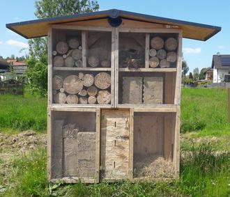 Das schöne Insektenhotel wird von den nützlichen kleinen Gartenhelfern gut angenommen.