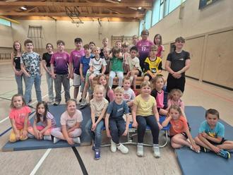 So tummelten such 25 Kids am vergangenen Mittwoch in der Turnhalle in Ringen und durften sich über vielfältige Aufbauten in der gesamten Halle freuen. Nach der Anmeldung und dem Aufwärmspiel, natürlich alles federführend durch die Jugendlichen durchgeführt, wurden die Teilnehmenden in Gruppen aufgeteilt. Mit Laufzetteln ausgestattet, rotierten die einzelnen von Station zu Station bis sie alle 6 Herausforderungen gemeistert hatten. Von sportlichen Parcours mit Trampolin, Seilen und Stufenbarren über Fußball und Basketball- Parcours bis hin zur Leichtathletik, verschiedene Schwerpunkte erwarteten die Kids. An jeder Station notierten die Jugendlichen die Zeiten.
