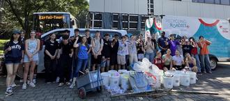 Erfolgreicher Beutezug – die Schülerinnen und Schüler nach der Aufräumaktion an der Ahr