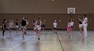 Im Anschluss kam ein besonderes Highlight. Die Teilnehmenden teilten sich in Kleingruppen auf und durften sich zu dem Lied „Muero“ von Alvaro Soler einen eigenen Tanz ausdenken. Bei der anschließenden Aufführung wurden alle Gruppen für ihre tollen Tänze mit reichlich Applaus belohnt.