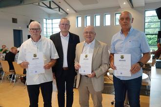 Bei der konstituierenden Sitzung des Grafschafter Gemeinderates im Ringener Bürgerhaus wurden auch neue Beigeordnete gewählt, ernannt und zum Teil vereidigt. Bürgermeister Achim Juchem (2.v.l.) gratulierte (v.l.) Udo Klein, Michael Schneider und Wolfgang Reuß.