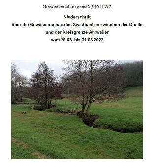 Die Struktur- und Genehmigungsdirektion Nord führte nach §101 Landeswassergesetz Rheinland-Pfalz (LWG) vom 29.-31. März 2022 eine Gewässerschau am Swistbach durch. Ein viertel Jahr später liegen nun die Ergebnisse vor.