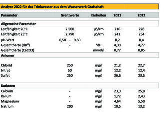 Aus den im Kalenderjahr 2022 durchgeführten analytischen Untersuchungen ergeben sich die folgenden Angaben zur Trinkwasserhärte: