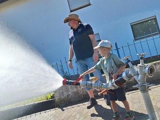 Einsatz des Hohlstrahlrohrs durch einen vielleicht zukünftigen Feuerwehrmann.
