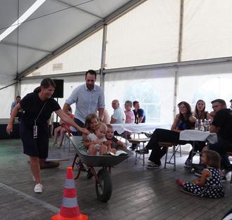 Kirmes in Nierendorf, das heißt auch "Schubkarrenrennen." Dabei gingen am Sonntag 20 Familienteams mit der Schubkarre auf die Jagd nach der besten Zeit. Am Ende steuerte Andre Moog seine Karre am schnellsten. Hier hatte Marcel Werner gleich drei Fahrgäste und einen Geleitschutz für die Pänz.