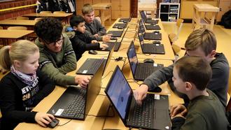 Die Schüler der Klasse 9a erläuterten den kleinen Gästen die Arbeit am Laptop.
