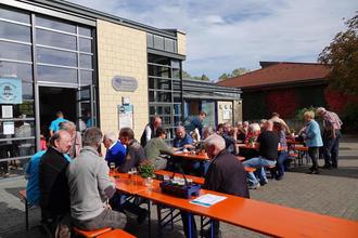 RINGEN. TW. Im Grafschafter Hauptort Ringen konnte nach zweijähriger Corona-Pause mit Mini-Programmen endlich wieder zünftig Kirmes gefeiert werden. Die Altgesellen aus Ringen und Beller hatten dazu ans Bürgerhaus eingeladen. Seit sieben Jahren treten sie dort als Veranstalter auf, vorher hatte es ein paar Jahre lang keine Kirmes im Ort gegeben. Davor war es der Trägerverein des Bürgerhauses, der zum Patronatsfest zu Ehren des heiligen Dionysius eingeladen hatte. Allerdings in einer abgespeckten Kirmesvariante. Erst, nachdem die Altgesellen das Fest übernommen hatten, versuchte man, an alte Zeiten und vor allen Dingen an alte Traditionen anzuknüpfen und greift dafür auch schon Mal tief in die Vereinskasse. „Unser Satzungszweck ist der Erhalt alter Traditionen“, macht der Vorsitzende Andreas Kunze deutlich, dass es bei der Kirmes und auch bei allen anderen Feierlichkeiten nicht darum geht, große Gewinne einzufahren.