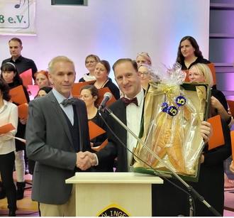 Nun galt es noch allen helfenden Händen zu danken. Da sind insbesondere die Sängerfrauen mit einem schmackhaften, abendlichen Imbiss zu nennen. Aber auch Käthe Kleser machte einen tollen Job bei der Dekoration der Tische und das Männerballet „Ringener Perlen“ versorgte Gäste und Sänger ganz hervorragend mit Getränken.