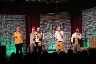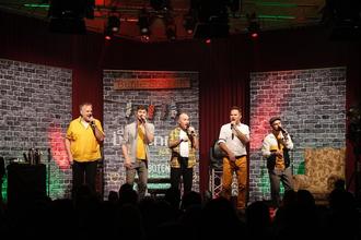 LANTERSHOFEN. TW. Die Nachfolger der legendären „Wise Guys“, die A-Cappella-Formation „Alte Bekannte“, war am vergangenen Sonntag in der Grafschaft zu Gast. Im Lantershofener Winzerverein gaben die fünf Musiker gleich zwei Konzerte und begeisterten dabei knapp 400 Gäste mit ihren zumeist lustigen Titeln. Nach dem Vorstellsong „Wir sind Alte Bekannte“ ließ die Band um Daniel Dän Dickopf zahlreiche Songs aus der aktuellen CD „Alte Socken“ erklingen. Die passende Tournee dazu war in den beiden vergangenen Jahren wegen der Corona-Pandemie weitestgehend ausgefallen. Nun lautetet die Konzertüberschrift „Bunte Socken Tour 2.0“. Heißt: man hat das ein oder andere Lied gegen neues Liedgut ausgetauscht. Aber es tauchte auch der ein oder andere Wise-Guys-Song, wie der Zungenbrecher „Sägewerk Bad Segeberg“ im Programm auf.