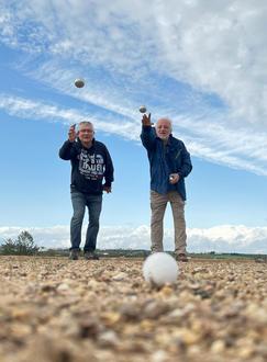 Das Foto zeigt den stellvertretenden Ortsvorsteher Detlef Lypken (l.) und den Ortsvorsteher Dieter Bornschlegl bei der Eröffnung des neuen Bouleplatzes