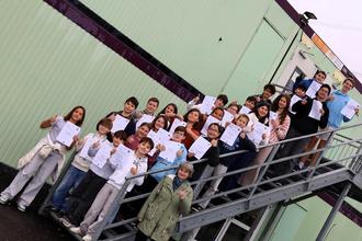 Eine starke Leistung - Die erfolgreichen Schülerinnen und Schüler freuen sich gemeinsam mit ihrer betreuenden Lehrerin Sigrid Eberle über die Qualifikation für die 2. Runde der Mathematik-Olympiade