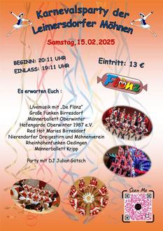 LEIMERSDORF. Die Leimersdorfer Möhnen feiern am Samstag, 15. Februar, ihre Karnevalsparty im Haus des Dorfes. Los geht es um 20.11 Uhr (Einlass: ab 19.11 Uhr), der Eintritt kostet 13 Euro. Die Gäste erwartet Livemusik mit „De Flönz“, die Großen Funken Birresdorf, das Männerballett Oberwinter, die Hafengarde Oberwinter 1987 e.V., die „Red Hot Maries“ aus Birresdorf, das Nierendorfer Dreigestirn und der Möhnenverein, die „Rheinhöhenfunken Oedingen“ sowie das Männerballett Kripp. DJ Julian Götsch legt auf.