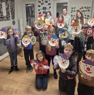 14 Kinder freuten sich am 28. Januar auf zwei Stunden Jeckenwerkstatt, in der sie nicht nur leckere Pizzaschnecken backten, die in der Pause gemeinsam verspeist wurden, sondern auch bunte Clowns gestalteten.