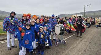 BENGEN. Einen regenlosen Straßenkarneval wünschen sich wohl alle Karnevalisten! Für den Tambourcorps-Heimatklänge Bengen ging dieser Wunsch am 7. Februar in Adendorf bei strahlendem Sonnenschein in Erfüllung – ein toller Auftakt. Ganz anders präsentierte sich der Weiberdonnerstag: „Regenponchos an“ hieß es, doch der Begeisterung tat das keinen Abbruch. Mit viel Freude hielt der Karneval trotz des nassen Wetters gemeinsam mit den Godesberger Stadtsoldaten Einzug in Bad Godesberg. Über mehrere Stunden begleitete der Tambourcorps deren traditionelle Säbeltänze musikalisch durch die Innenstadt. Auch in Nierendorf und Oedingen trotzten die Musiker dem Regen und absolvierten ihren Zugweg. Belohnt wurden sie dafür am Sonntag - beim Zug in Bad Godesberg strahlte endlich die Sonne und sorgte für beste Stimmung. Das Publikum, das trotz wechselhaften Wetters zahlreich erschienen war, bereitete dem Verein an allen Tagen eine fantastische Atmosphäre. Ein besonderer Moment war zudem das Dankeschönständchen für Getränkehändler Visang der den Verein jedes Jahr herzlich empfängt.