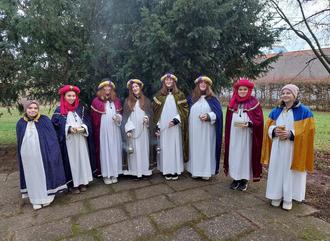 Die Ministranten aus Laugna waren als Sternsinger fleißig unterwegs und sammelten als Heilig Drei König verkleidet für bedürftige Kinder. Nach der feierlichen Aussendung gestaltet von Pfarrer Alois Roßmanith liefen die Kinder und Jugendlichen durchs Dorf und sammelten fleißig Geldspenden und Süßigkeiten. Vielen Dank sagen die Minis aus Laugna an die Spender und Spenderinnen, die dieses Jahr 1450 Euro gespendet haben. Im Bild von links;:Theresa Bartsch, Anna Maria Seitz, Lea Tischmacher, Marie Sporer, Simone Rehm, Annalena Deil, Laura Raeke, Andrea Rehm,