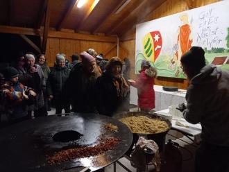 Nach der Rückkehr zum Bürgerhaus gab es köstliche Bratensemmel und Schupfnudeln für die hungrigen Wanderer. Für die Kinder wurden noch Crêpe gebacken. An den Feuerkaminen konnten sich die Besucher aufwärmen und den Abend in fröhlicher Atmosphäre genießen.
