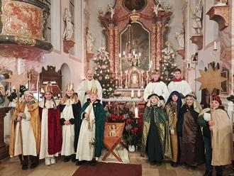 Als erste wurden beim Neujahrsgottesdienst in der Pfarreiengemeinschaft Bliensbach von den sechs Pfarreien die Sternsinger von Osterbuch und Asbach von Pfarrer Alois Roßmanith ausgesendet. Das Thema der heurigen Sternsingeraktion lautet: Sternsingen gegen Kinderarbeit-Schule statt Fabrik.