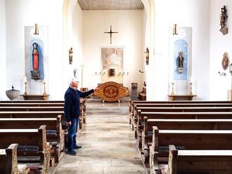 Stolz zeigt Kirchenpfleger Hans Schuster den frisch renovierten Innenraum der Pfarrkirche.