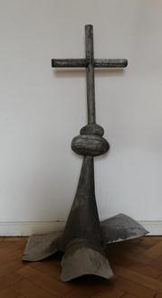 Spenglermeister Daniel Kastner aus Steinekirch hat das neue Kreuz aus Kupfer gefertigt. Er orientierte sich dabei an der Form des alten Kreuzes. Der Corpus dazu stammt von Winfried Schwarz (Inhaber der Firma Metallbau Schwarz in Geratshofen), dem Großvater des jetzigen Besitzers. Schwarz goss den Corpus aus Messing. Das alte Kreuz, Objekt des Monats Dezember, kam Mitte des Jahres 2023 ins Heimatmuseum und wird dort im Depot aufbewahrt.