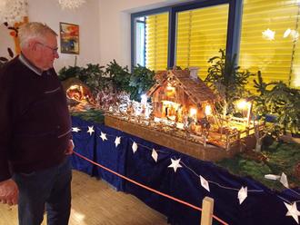 Der Hirschbacher Erwin Liepert stellte beim Adventsmarkt der Lebenshilfe seine selbsgebastelten Krippen aus.
