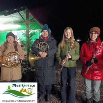 Anna Berchtold (Horn, Klasse Alexander Körner), Jasmin Angelika Berchtold (Horn, Klasse Johannes Anner), Johanna Mair (Querflöte, Klasse Eszter Rakosi) und Michaela Rößle (Querflöte, Klasse Eszter Rakosi) luden mit adventlichen Stücken wie „The First Noel“, „Süßer die Glocken nie klingen“ oder „Kling Glöckchen“ sogar zum Mitsingen ein.