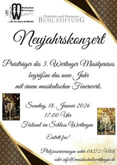 Die Musikschule Wertingen beginnt das neue Jahr 2026, wie sie das alte beim Adventskonzert beschließt: erfolgreiche und preisgekrönte Musikschüler erobern das Podium und gestalten ein ansprechendes und inspirierendes Konzert. Das traditionelle Neujahrskonzert findet am Sonntag, den 18. Januar 2026 um 17 Uhr im Festsaal des Wertinger Schlosses statt. Beim „Wertinger Musikpreis“ und beim „Concertino“-Wettbewerb des BBMV gingen zahlreiche junge Talente als Preisträger hervor und können es nicht erwarten, ihre Musikstücke erneut zum Besten zu geben.