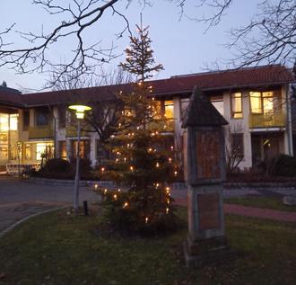 Im Außenbereich des Wertinger Seniorenheimes leuchtet seit dem 1.Advent ein Christbaum am Denkmal der ehemaligen Klosterfrauen. Der Lichterbaum erfreut die Bewohnerinnen und Bewohner von St.Klara während der Weihnachtszeit.