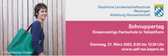 Die Hauswirtschaftsschule Wertingen beginnt im September 2023 mit einem neuen Semester. Der einsemestrige Studiengang in Teilzeitform an der Landwirtschaftsschule in Wertingen dauert bis Mai 2025 und lehrt einen Haushalt fachkundig zu führen - gleich, ob für die eigene Familie oder für ein Einkommen mit hauswirtschaftlichen Kompetenzen. Wir können 20 Studierende aufnehmen.