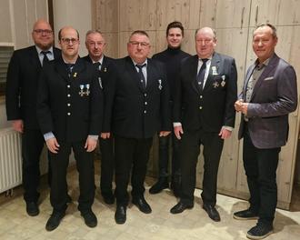 Auf dem Bild von links: BKV Kreisgeschäftsführer Stefan Käsmayr, Kassierer Ernst Schrödl, 2.Vorstand Alfred Schrödl, 1.Vorstand Erich Domler, Fahnenträger Andreas Schick, BKV Kreisvorsitzender Josef Endres und Bürgermeister Willy Lehmeier.