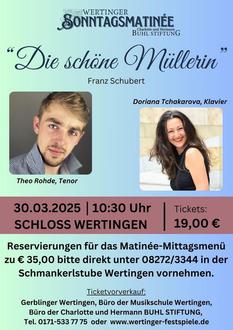 "Die schöne Müllerin" erklingt am 30. März um 10.30 Uhr im Wertinger Schloss.
