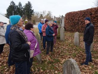 Eine stattliche Zahl von Kolpingmitglieder nahmen an der Wanderung zur jüdischen Gemeinde nach Buttenwiesen teil. Bei einer eindrucksvollen interessanten Führung von Dr. Johannes Mordstein (Bild rechts) wurde die Geschichte der jüdischen Gemeinde aufgezeigt. Mordstein erläuterte dabei, dass in früheren Zeiten die Gemeinde Buttenwiesen mehrere hundert jüdische Einwohner hatte. Besichtigt wurde die ehemalige Synagoge, die bis 1988 zur Schule umfunktioniert wurde, die Mikwe (jüdisches Ritualbad) und vor allem der jüdische Friedhof mitten im Ort, der bereits 1632 angelegt wurde und die letzte Bestattung 1938 stattfand.