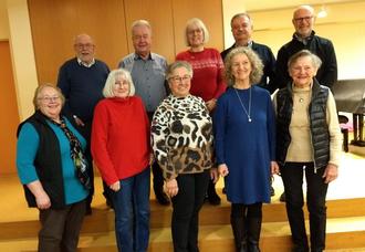 Bisherige und neue Vorstandschaft: Hintere Reihe (von links): Schriftführer Bernhard Wutte, 1. Vorsitzender Franz Miller, neue Beisitzerin Sopran Verena Heppner, Beisitzer Bass Ernst Göttesdorfer, Beisitzer Tenor Georg Behringer, Vordere Reihe (von links): Kassiererin Irmgard Stallauer, 2. Vorsitzende Ute Schäfer, Beisitzerin Alt Gabriele Killensberger, Archivarin Rita Scheuenpflug, bisherige Beisitzerin Sopran Centa Wagner